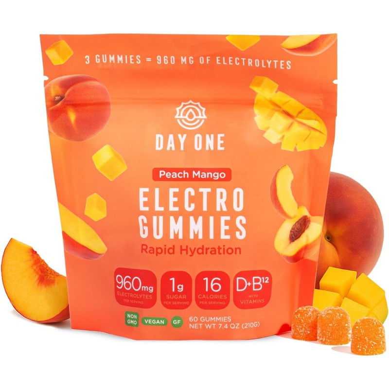 Day One ElectroGummies – Electrolyte Hydration Gummies – Ideal to Boost Hydration & Energy – Supplement for Post & Pre Workout – for Men, Women, Kids – Peach Mango Flavored – 60 Gummies