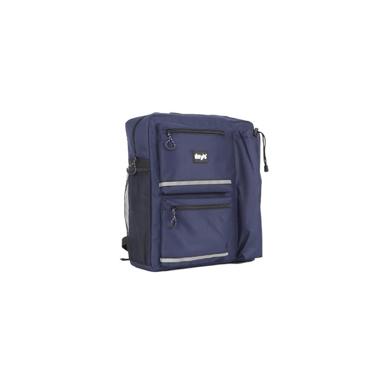 This Scooter bag is highly padded in all pockets and throughout the main compartment to help ensure the safety of your belongings. The bag itself is made from hard-wearing waterproof material and features 3 large exterior pockets, two for belongings and a third pocket with drawstring for a folding walking stick or an umbrella. The Deluxe Scooter Bag also features an Internal clear zipped pouch for wallet storage, reflective strips to increase safety on the streets or roads and a rubberised top handle for extra comfort when transporting the bag. The bag straps can be easily adjusted to sit securely and safety attached to the back of a scooter chair. Extra large storage capacity of 27 litres. Size 400x450x140mm (16x18x5?").