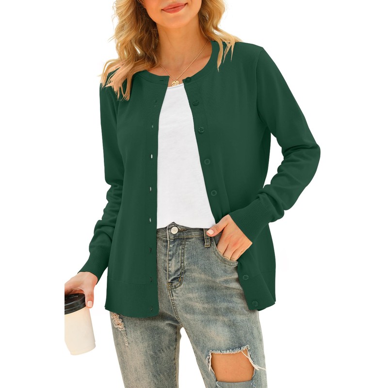 - Features: Casual cardigan with crew neck, long sleeves, button placket, plain colours and short knitted length. This classic basic cardigan for women with a tailored design that flatters your figure.