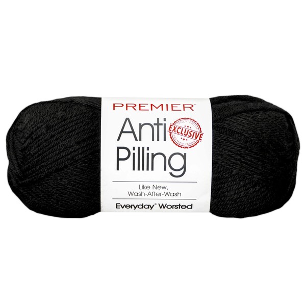 Premier Yarns Anti-Pilling Everyday Worsted Yarn, Soft Acrylic, Ideal for Crocheting and Knitting, Machine Washable, 180 Yards, Black