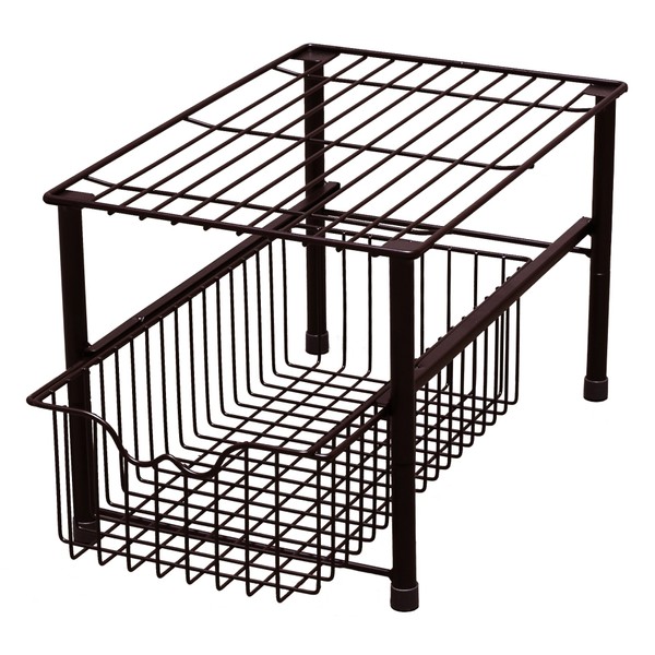 DecoBros Stackable Under Sink Cabinet Sliding Basket Organizer Drawer,Bronze