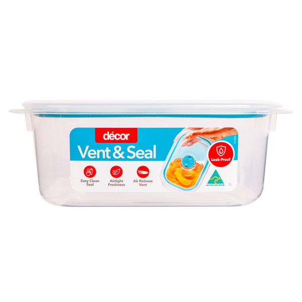 Decor Vent & Seal Plastic Oblong Container, 1 Litre Capacity