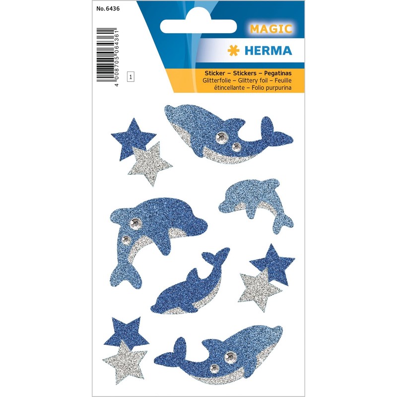 • Box contents: 8 x HERMA Diamond Glittery children's stickers (1 sheet of 8 stickers) – dolphins