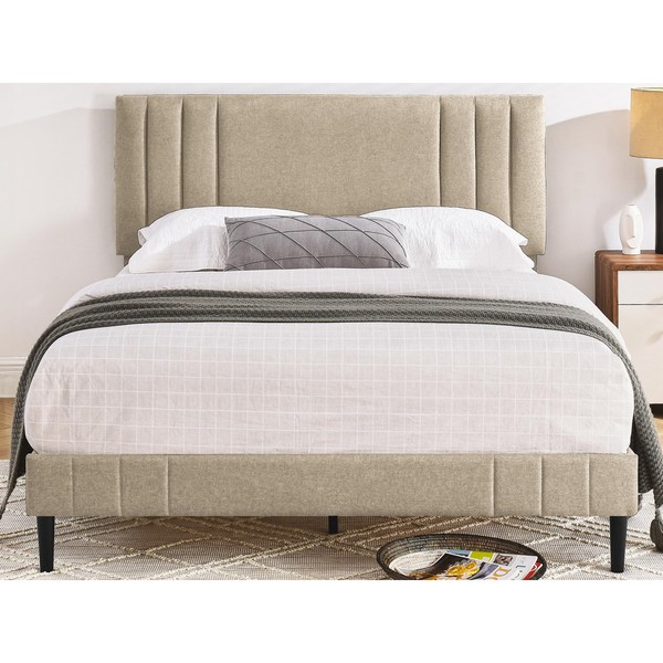 Decoro Chicago Modern Tufted Upholstered Platform Full Size Bed Frame, Linen