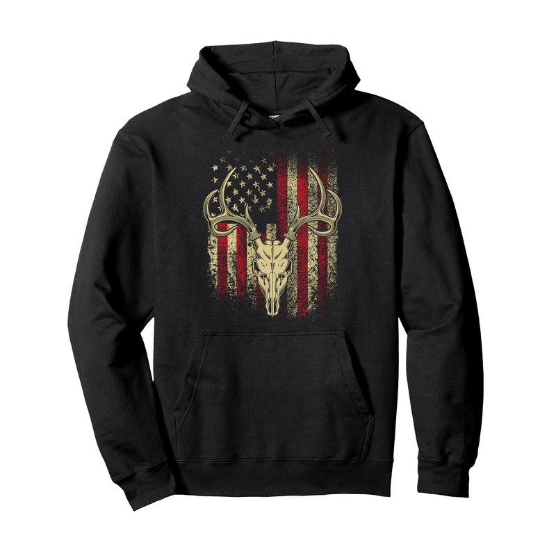 Deer Hunters Deer Skull on American Flag Pullover Hoodie