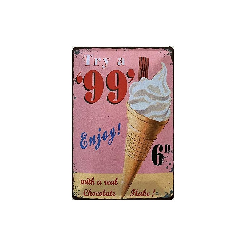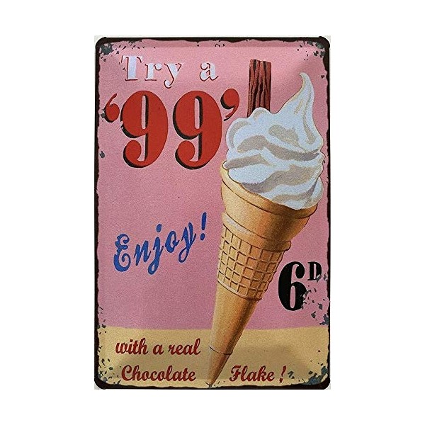 Deko7 Tin Sign 30 x 20 cm Vintage Advertising Ice Cream