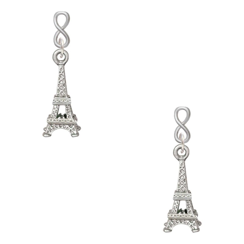 - Silvertone 3-D Eiffel Tower Silvertone Infinity Post Earrings.