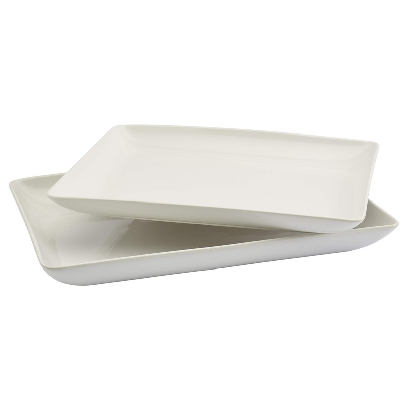 - CLASSIC WHITE It's elegant curves and smooth glossy textured finished in a natural white provides a timeless look which will look great for years to come. This 2 Piece Rectangular Platter Set comes with one large platter (17"x12.5") and one small platter (15"x11.5").
