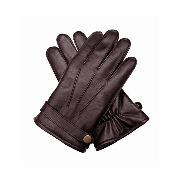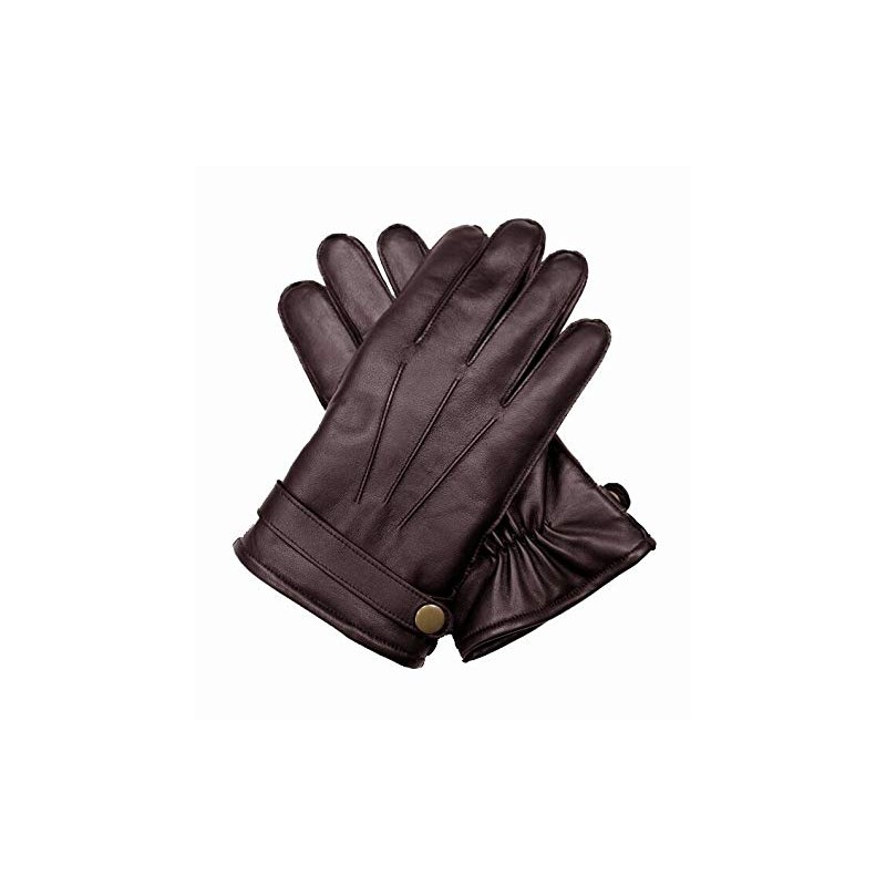 Dents Men's Leather Wool Knit Lined Strap & Stud Gloves, Brown, Medium
