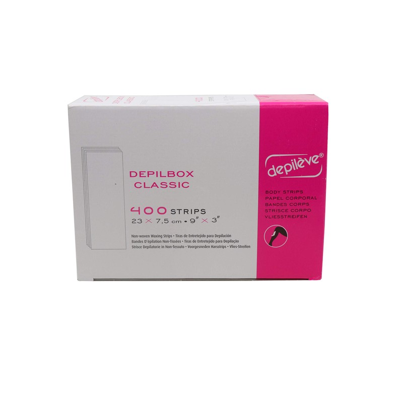 The Depileve Depilbox Classic Stripes are conveniently packaged for numerous uses. The strips 7.5 x 23 cm are in a box of 400.
