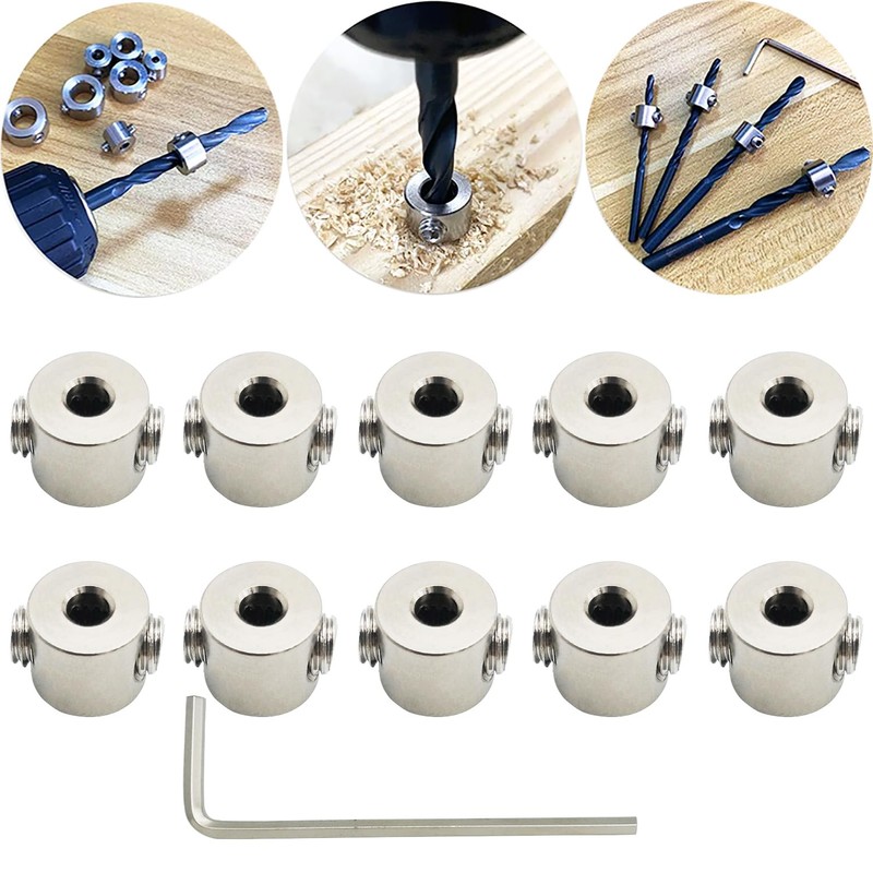 - Size and packaging: drill depth stop, ID: approx. 3 mm, OD: approx. 9 mm. Thickness: approx. 8 mm, 10 pieces, with hex key approx. 2mm / 2.5mm (Subject to actual pack size).