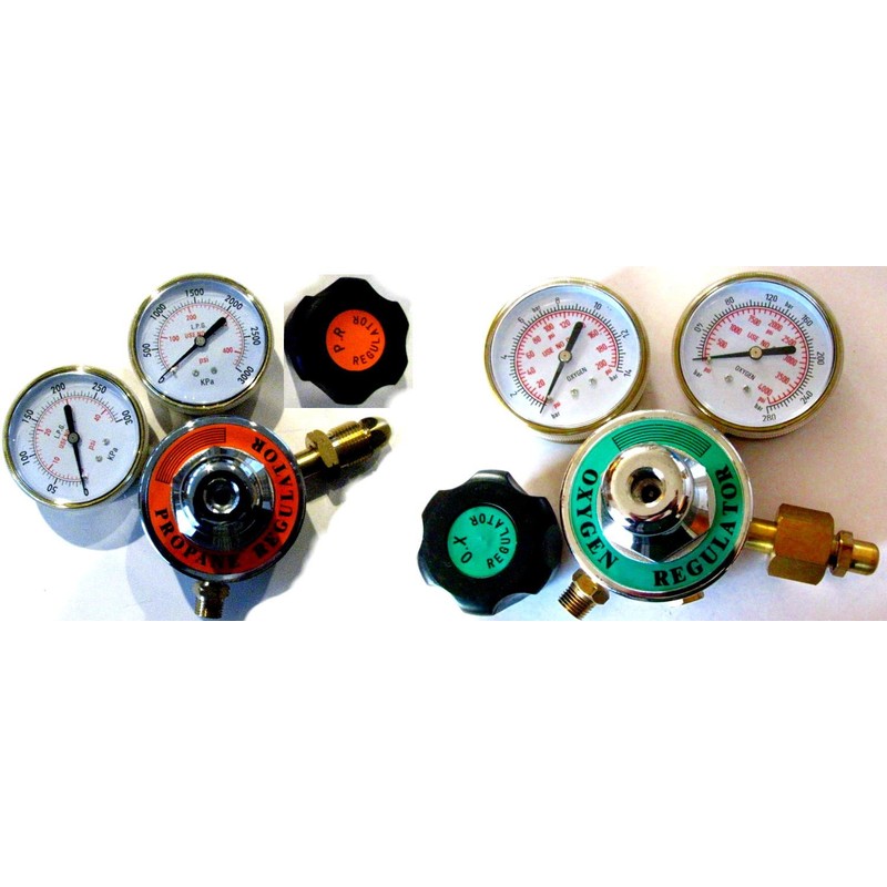 • Kit contains one genuine propane (or Acetylene) regulator, and one oxygen regulator.