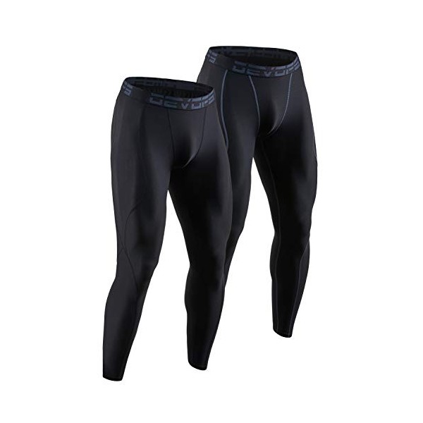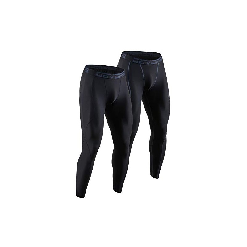 DEVOPS 2 Pack Men's Compression Pants Athletic Leggings (Small, Black/Black)