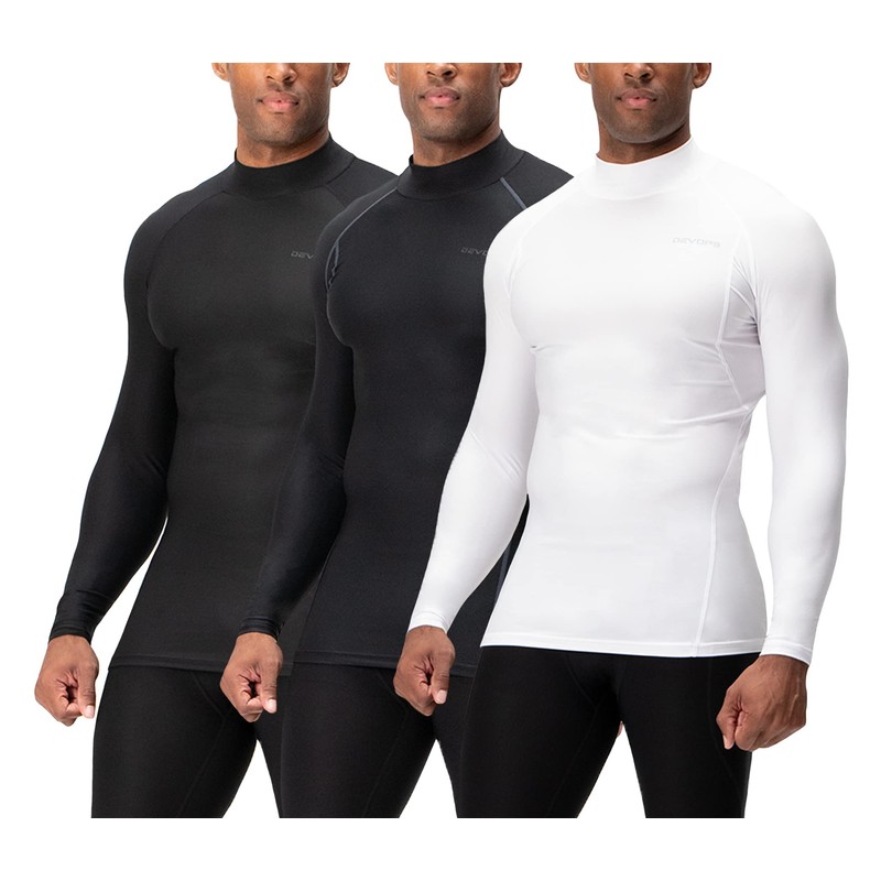DEVOPS 3 Pack Men's Athletic Turtle Neck Long Sleeve Compression Shirts (Medium, Black/Black/White)