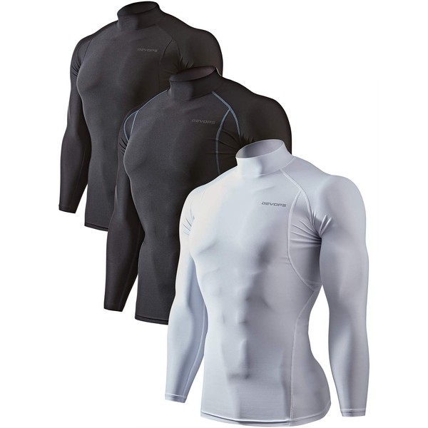 DEVOPS 3 Pack Men's Athletic Turtle Neck Long Sleeve Compression Shirts (X-Large, Black/Black/White)
