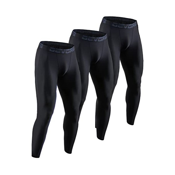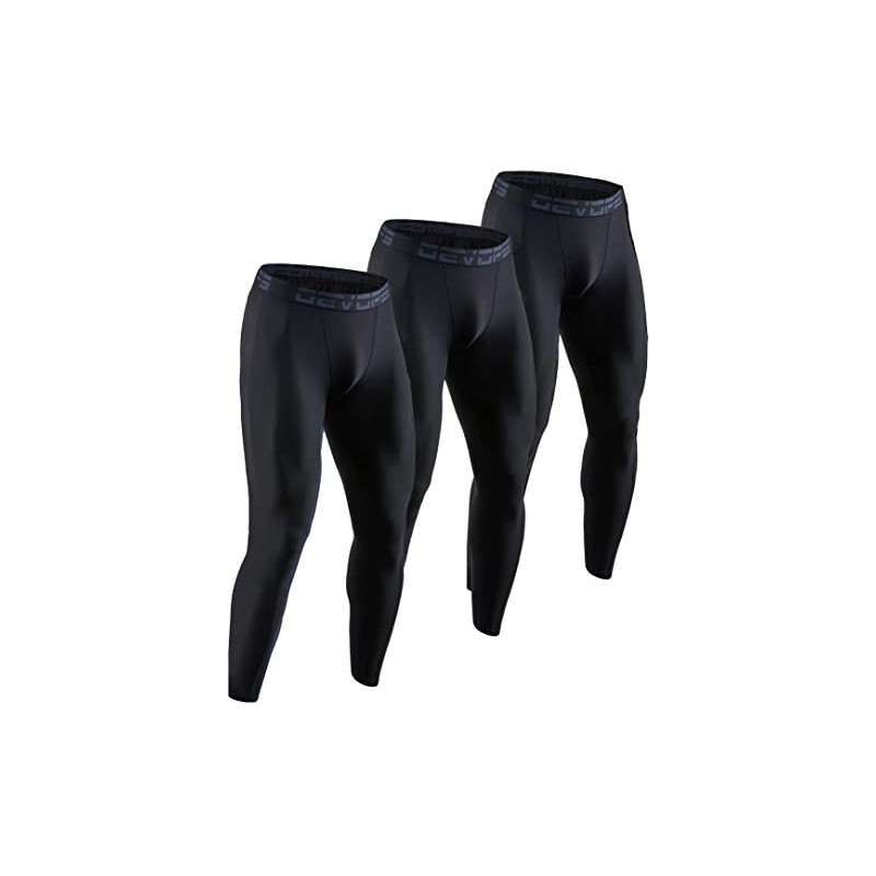 DEVOPS 3 Pack Men's Compression Pants Athletic Leggings (Large, Black/Black/Black)