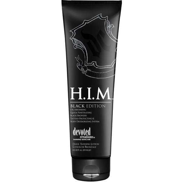 Devoted Creations H.I.M. Black Edition, Oil Absorbing Quick Penetrating Black Tan Lotion Bronzer, 8.5 oz.