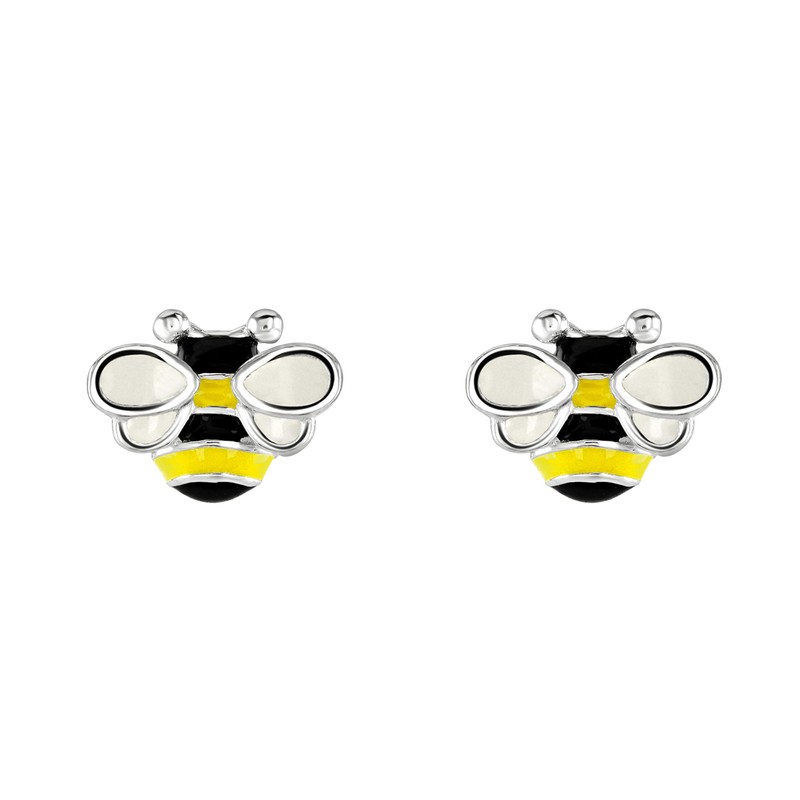 Dew Sterling Silver and Enamel Busy Bee Stud Earrings