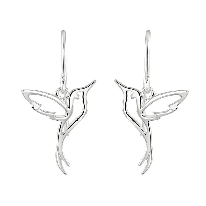 Sweet and delicate, these sterling silver drop earrings are cut in the graceful shape of a hummingbird. Dew is the essential everyday sterling silver collection that offers contemporary designs presented in a beautiful gift box.