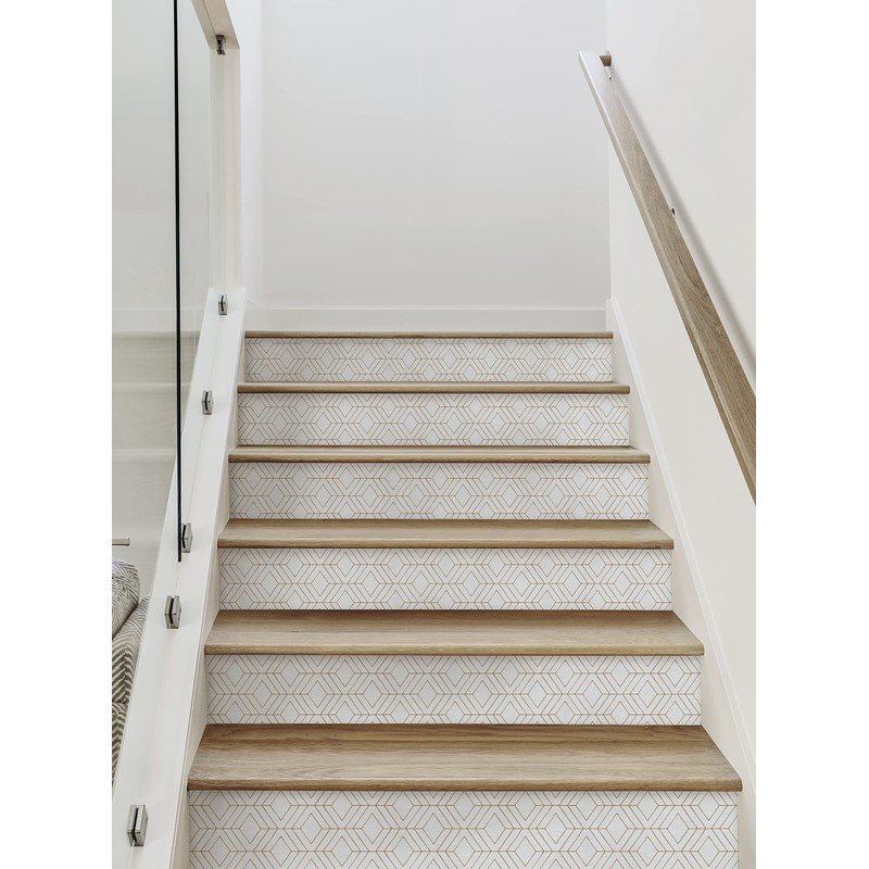 Diamond Geometric Peel and Stick Stair Riser Strips (Off White, 6 Pack - 48" w x 7" h)