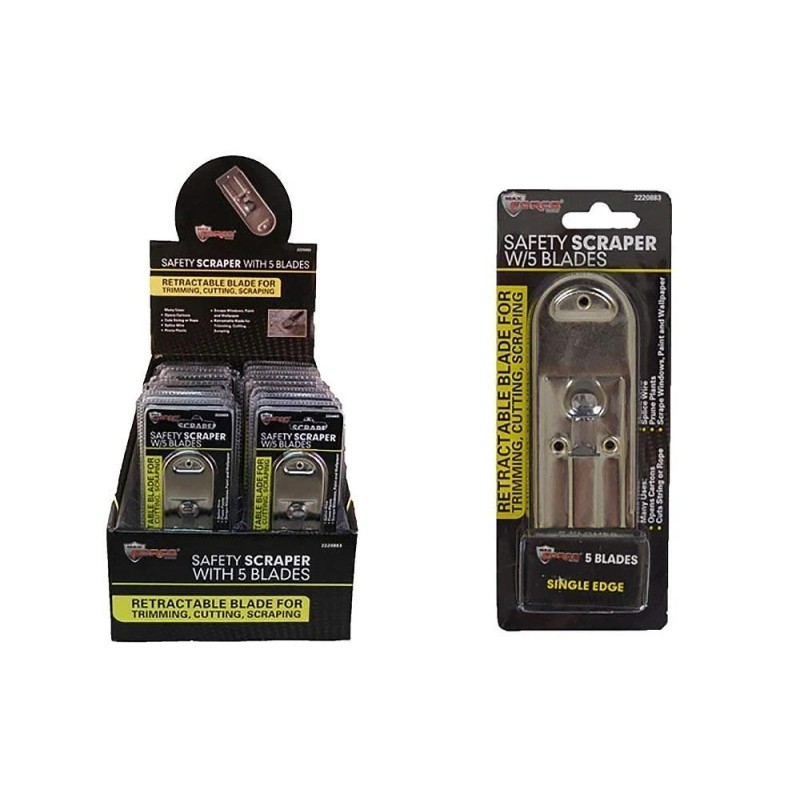 - Safety scraper is a familiar tool and comes with 5 blades to get your project started