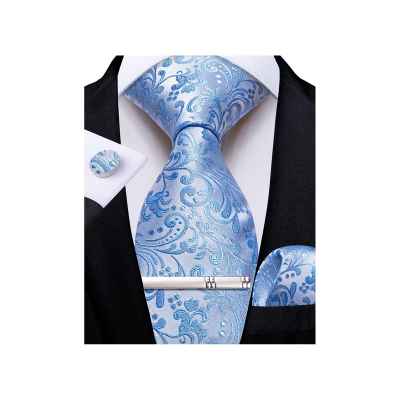 DiBanGu Conjunto de corbata de seda para hombre, Floral Azul Sólido, Talla única