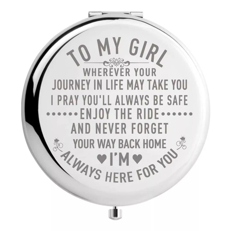 Regalo novedoso para mujer Espejo de viaje de calidad grabado con la letra I love you for all that you are, all that you have been, and all you are yet to be. Regresará recuerdos sorprendentes cuando lo utilices siempre.; El mejor regalo para las ocasionesMejor regalo para la esposa o novia para su fiesta de cumpleaños, aniversario, día de la madre, Navidad, fiesta de jubilación, día de San Valentín, regalo de vacaciones, canasta de regalo genial, regalo de engranaje, pequeño regalo creativo. Ideas de regalo sorpresa para esposa o novia que cumple 30 -80 años. Muestra lo mucho que te gusta con el mejor regalo que sin duda te encantará.; - -; Auténtico para una mejor calidadTodos los auténticos espejos de viaje Didadic se venden sólo por V-SPORTS. - -; Didadic USA Gifts Brand Didadic creativos nuevos espejos de viaje con asombrosos refranes que hacen divertidos regalos para mujeres, mamá, hija, hermana, abuela, tía, esposa, novia, madre, maestro, compañero de trabajo, jefe, niñas, niños, adultos, etc. Color:Plateado | Tamaño:To My Girl (2.6inch)