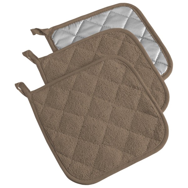 DII Basic Terry Collection Quilted 100% Cotton, Potholder, Brown, 3 Piece