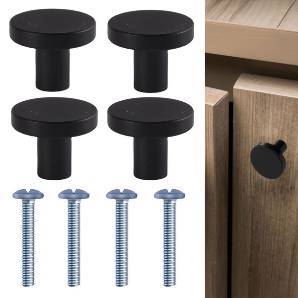 DILUSILK 4 Sets Black Door Knobs Kitchen Cabinet Knobs Round Cabinet Knobs Black Drawer Knobs Kitchen Door Knobs Cupboard Knobs Black Knobs for Cupboard Wardrobe Door Furniture