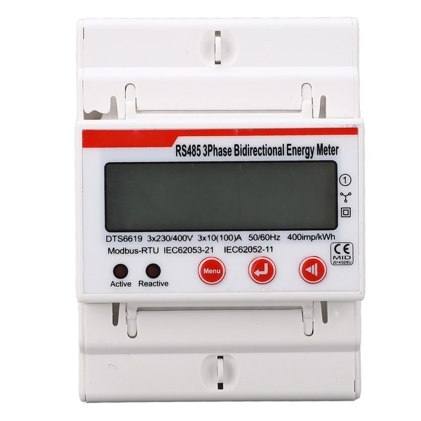 1、Multifunctional: This power consumption monitor is multifunctional and can display active energy, reactive energy, current, voltage, power, frequency and demand. 2、Easy Connection: This 3 phase energy meter uses for Modbus RS485 to communicate with other devices and provides 2 passive outputs. Pulse 1 can be configured to total, import, export kWh and pulse 2 has a fixed pulse output of 400 imp/kWh. 3、Energy Saving: Thanks to the bidirectional measurement, the meter is suitable for energy input and output as well as for performance monitoring. The AC meter is suitable for renewable energy applications such as solar energy and battery storage. 4、35mm DIN Standard Rail Mounting: This din rail electricity usage monitor is mounted on 35mm DIN standard rail, which is very easy to install and requires no other tools. 5、LCD Backlight Display: This voltmeter ammeter frequency power meter features an LCD backlight display, which makes the display very clear and easy to read.
