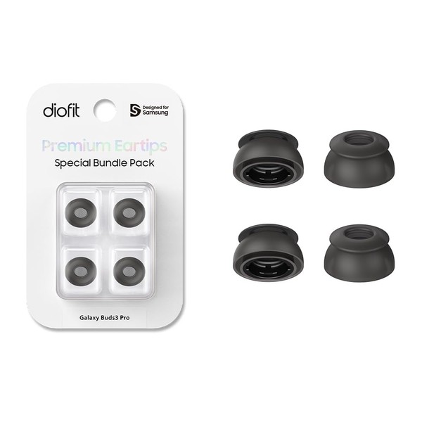 diofit Premium Multi-Flange Eartips Compatible with Galaxy Buds3 Pro (Black, Small)
