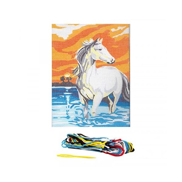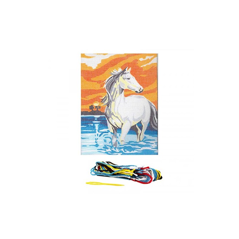- Complete canvas with deliveries. White horse design. Canvas, white. The set includes: the drawing surface cotton - 1 needle, the cable is completely 100% cotton for performing in half cross stitch and a plug of instructions. Dimensions: 15 x 20 cm