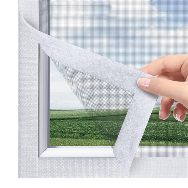 DIY Window Screen Hook and Loop Adhesive Edging Tape and Mesh Window Screens Replacement (White)