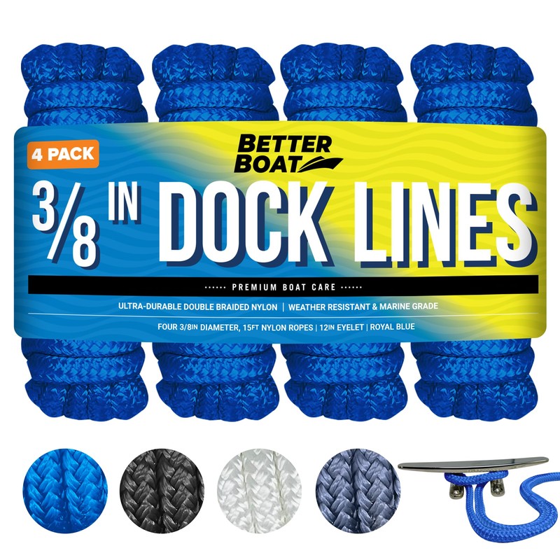 - RELIABLE & STRONG BOAT LINES: Capable of absorbing shock loads. With a mooring tie off, the knots hold and easy to unknot. Ideal dock lines for boats 3/8 as boat dock supplies or accessories for camping & moving. Available in 1/2" and fender lines.