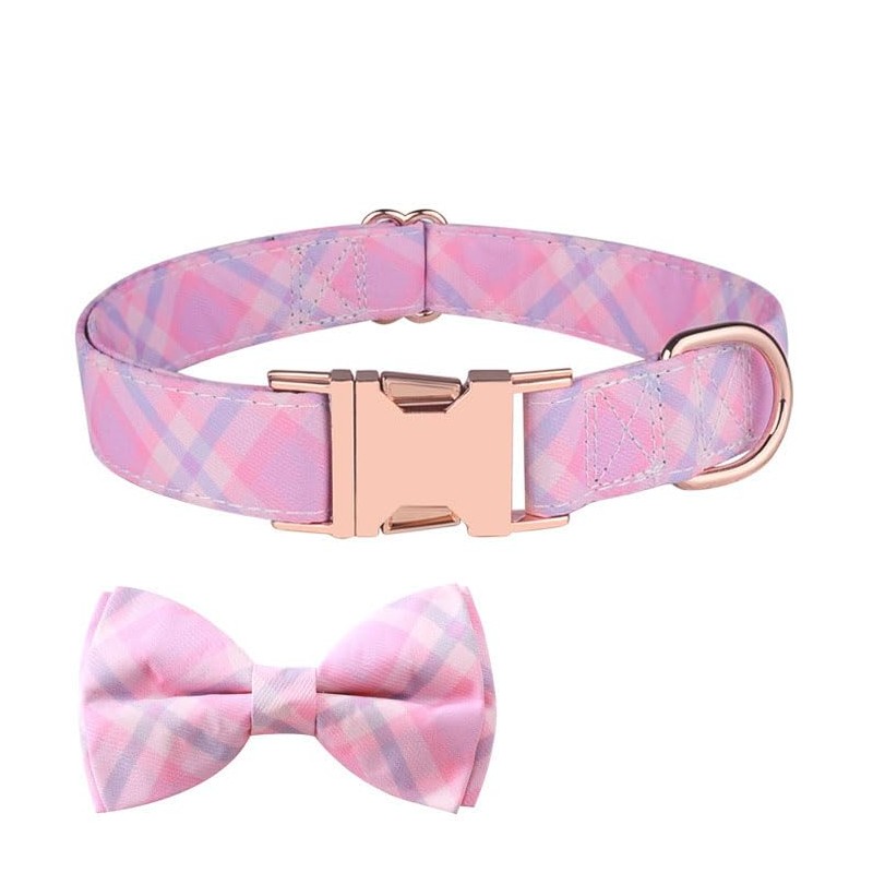 Dog Collar with Adjustable Bow Tie (Pink Plaid, Large)