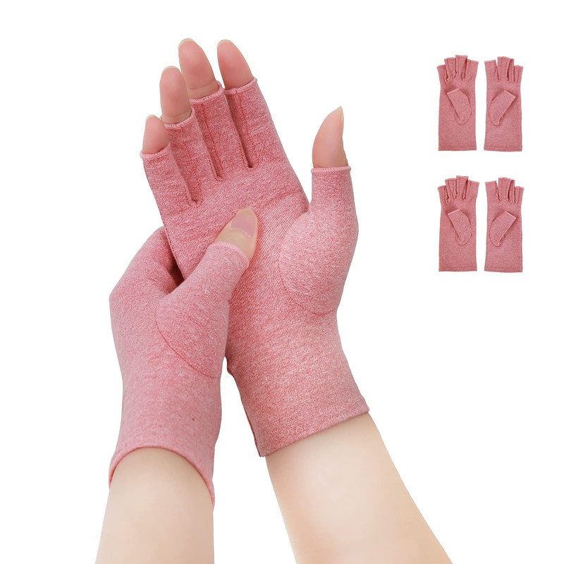 [DONFRI] 指 サポーター 関節 指のサポーター 五本指 手のひら サポーター 薄い手袋 指なしグローブ ゲーミング手袋 (Lサイズ (x 2), ピンク)