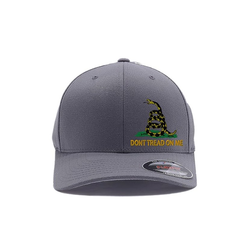 Dont Tread ON ME, Gadsden Flag Flex Fitted hat | Custom Embroidered D.T.O.M. Hat (S-M, Grey)