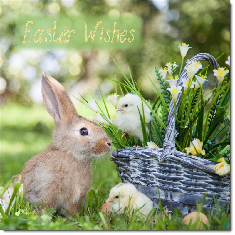 doodlecards Easter Card Bunny with Chicks Square Size with Plain Envelope