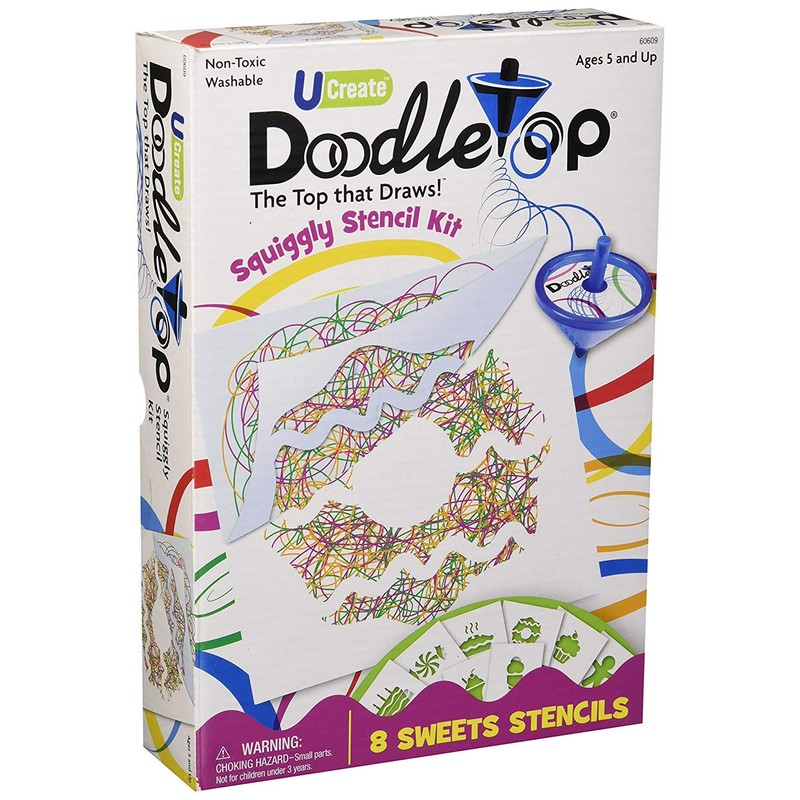 - Create colorful, beautiful images with the Doodletop squiggly stencil Kit includes; birthday cake, Peppermint swirl, fresh baked Pie, doughnut, cupcake, gingerbread man, ice cream sundae, ice cream cone stencils