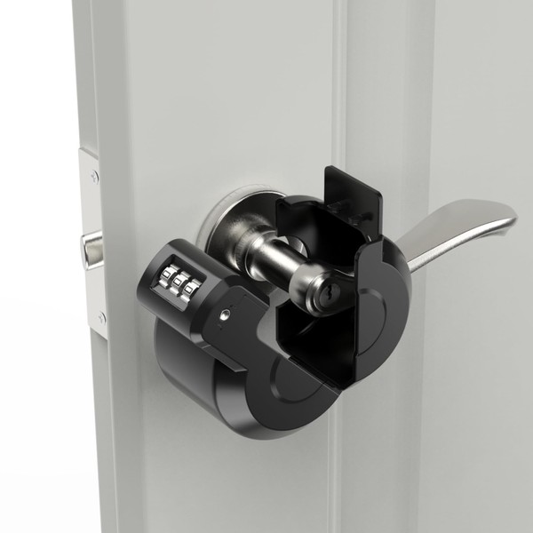- CODE DESIGN NO KEY NEEDED: The door lever door handle lockout device design with code lock. Compared with the traditional key handle lockout device, the code device no need to carry the key to lock or unlock the deice, more convenient and save your time