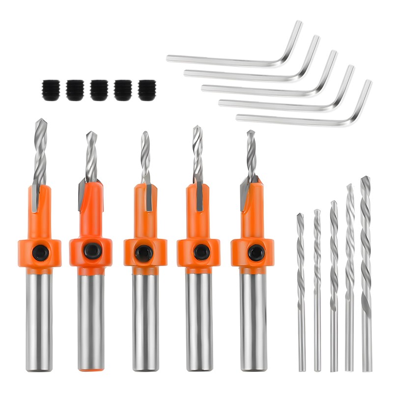 - PACKAGE INCLUDED : Our countersink drill bit set offers 5 sizes - 2.8x10mm, 3.0x10mm, 3.2x10mm, 3.5x10mm, and 4x10mm, along with 5 free replaceable bits and 5 allen wrenches. Drill bits of different sizes can meet your different needs.
