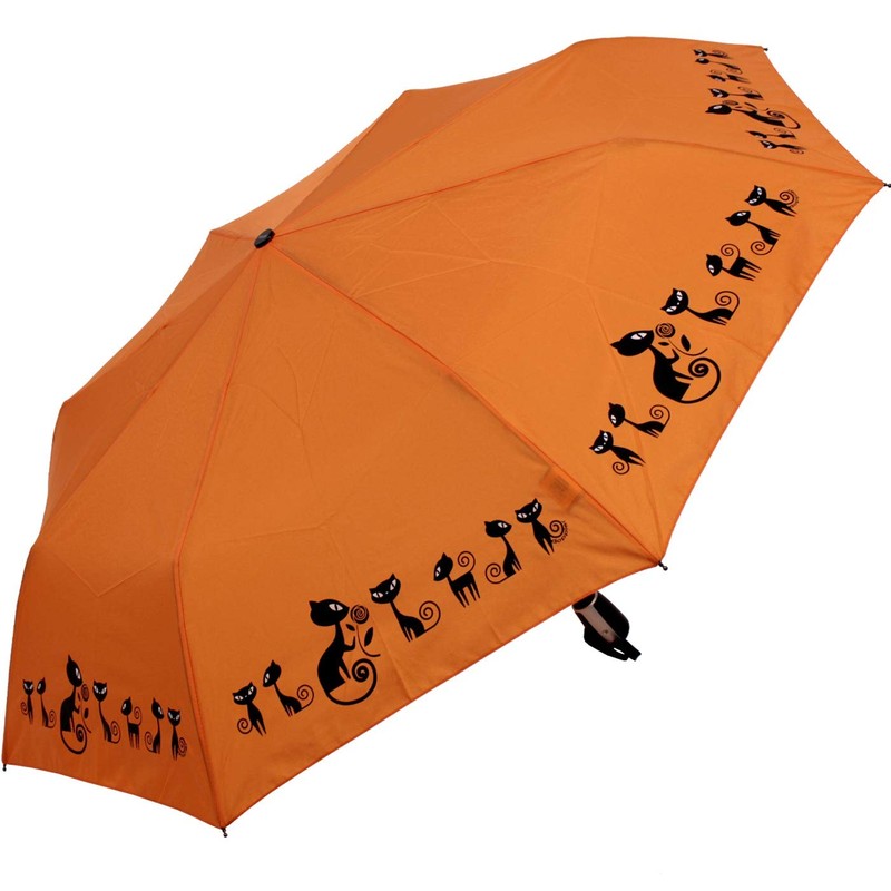 • The new design of this umbrella will definitely delight all cat lovers. The umbrella roof shows four lovingly designed cat motifs on a brightly coloured surface. Furthermore, the automatic mechanism makes the handling of the pocket umbrella very comfortable.