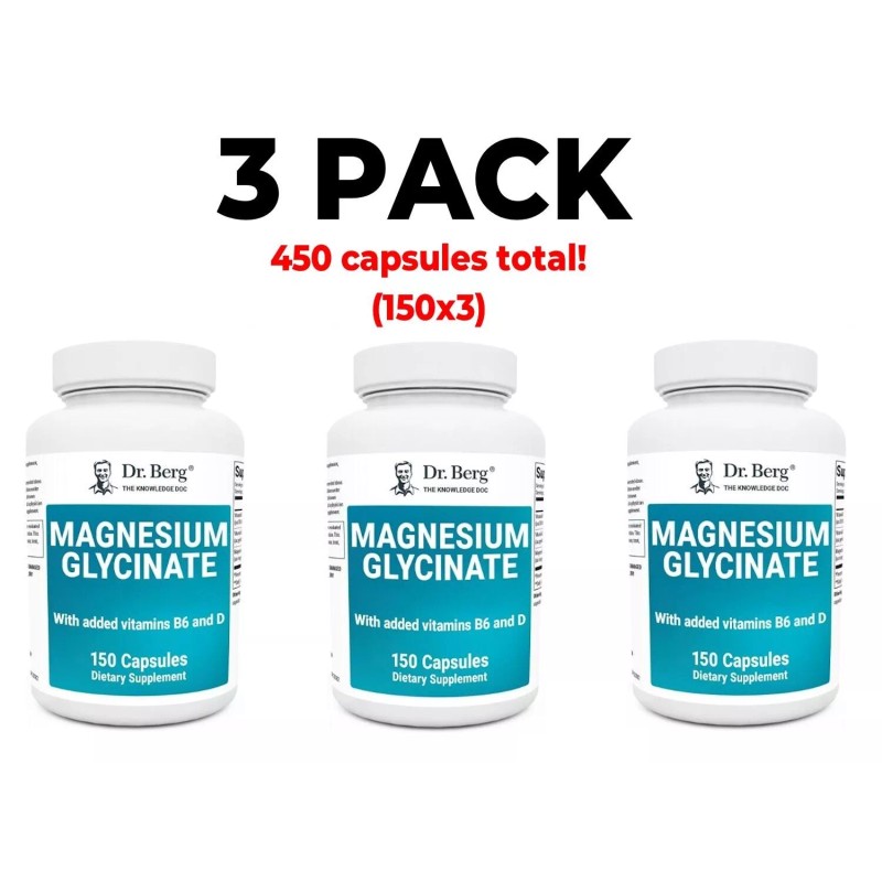 Dr. Berg's Magnesium Glycinate, 3 PACK, 150 Veg Cap each (450 total!)