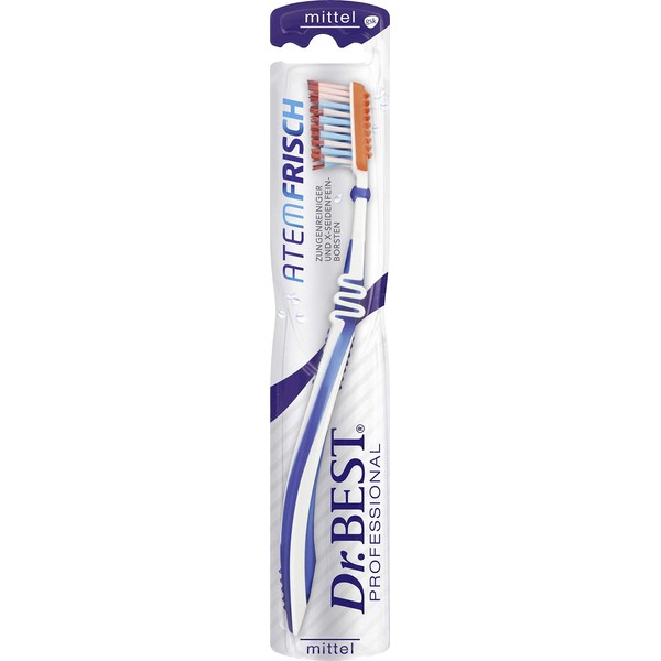 - Dr. Best Atemfrisch toothbrush with integrated tongue cleaner removes up to 5x more bacteria from the tongue surface than brushing your teeth alone