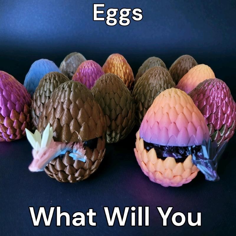 Magical scaled dragon egg with a mystery Colored articulating Crystal dragon inside! Small eggs contain a 14" Crystal Dragon Large eggs contain a 17" Crystal Dragon I The Color of Egg and dragon that you recieve will be chosen at random! Dragon designs by CinderWing 3D Keep in mind that 3D printing-layer lines and minor imperfections exist. Colors can vary slightly and don't always look exactly like ones pictured. Each one will be its own unique magical creature! Dragons do have points that may be a bit more fragile and therefore these are not recommended for smaller children.