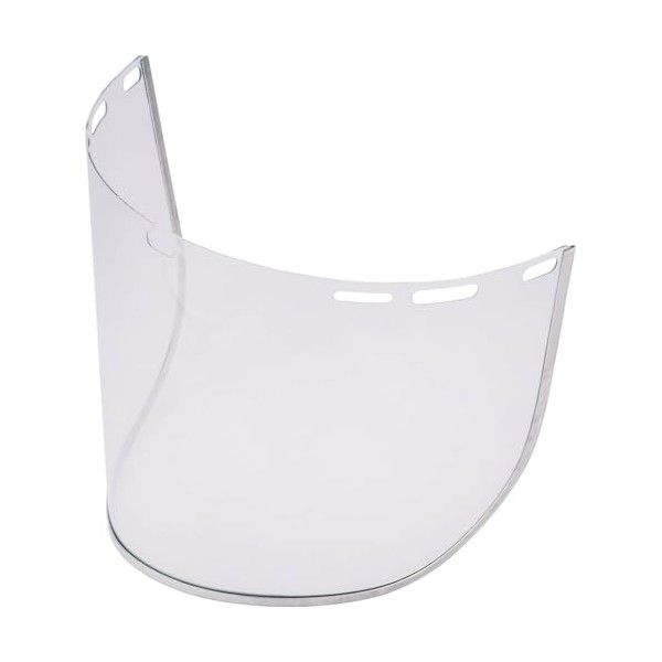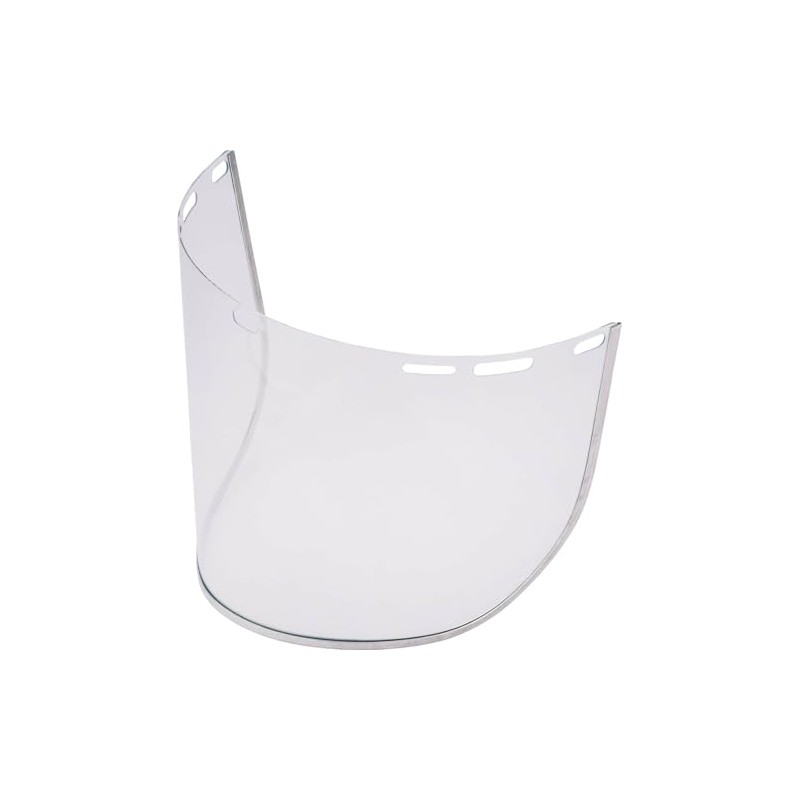 - Clear polycarbonate. Providing a clear view with adjustable browguard, sweatband and harness.
