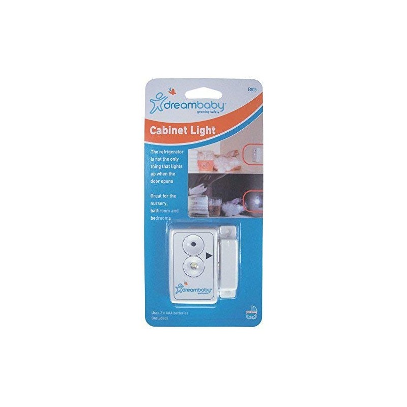Dreambaby Cabinet Lights install easily into any cupboard and light up when the door opens and turns off when it closes. Put an end to fumbling in the dark in the middle of the night! Dreambaby Cabinet Lights emit a soft gentle glow that won’t wake the entire household but lets tired parents find what they need quickly.