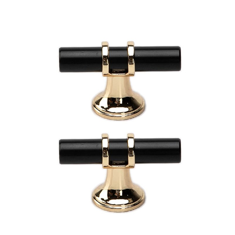 Dreneco 2 Pack Drawer Knobs Zinc Alloy Cabinet Knobs Cupboard Knobs T Bar Handles (Single Hole, Black+Gold)