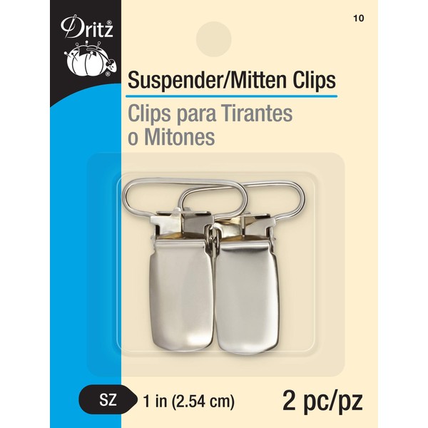 Dritz Suspender & Mitten Clips are perfect to keep garments, household items and accessories securely fastened. Great for making suspenders, mittens and pacifier clips. 1 Set of Nickel finish Suspender & Mitten Clips per package.