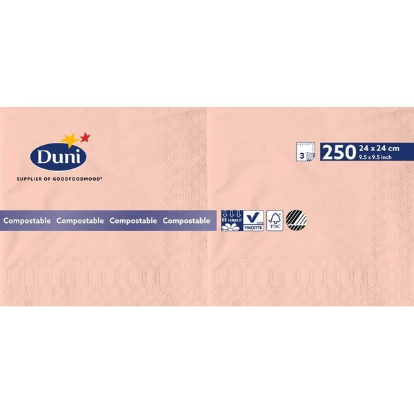 Duni Cellulose Napkins 3-ply Quarter Fold Mellow Rose 24 x 24 cm Pack of 250